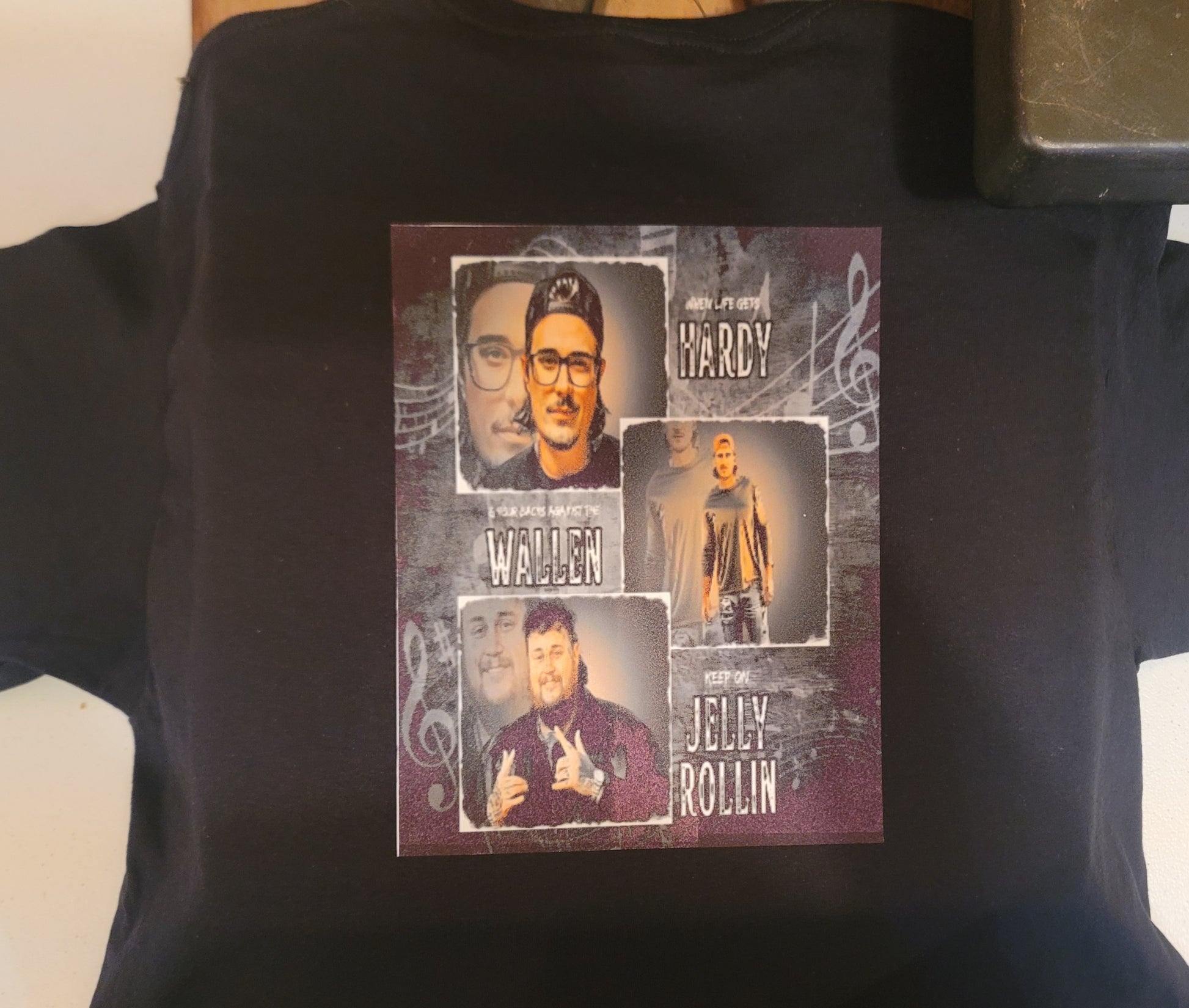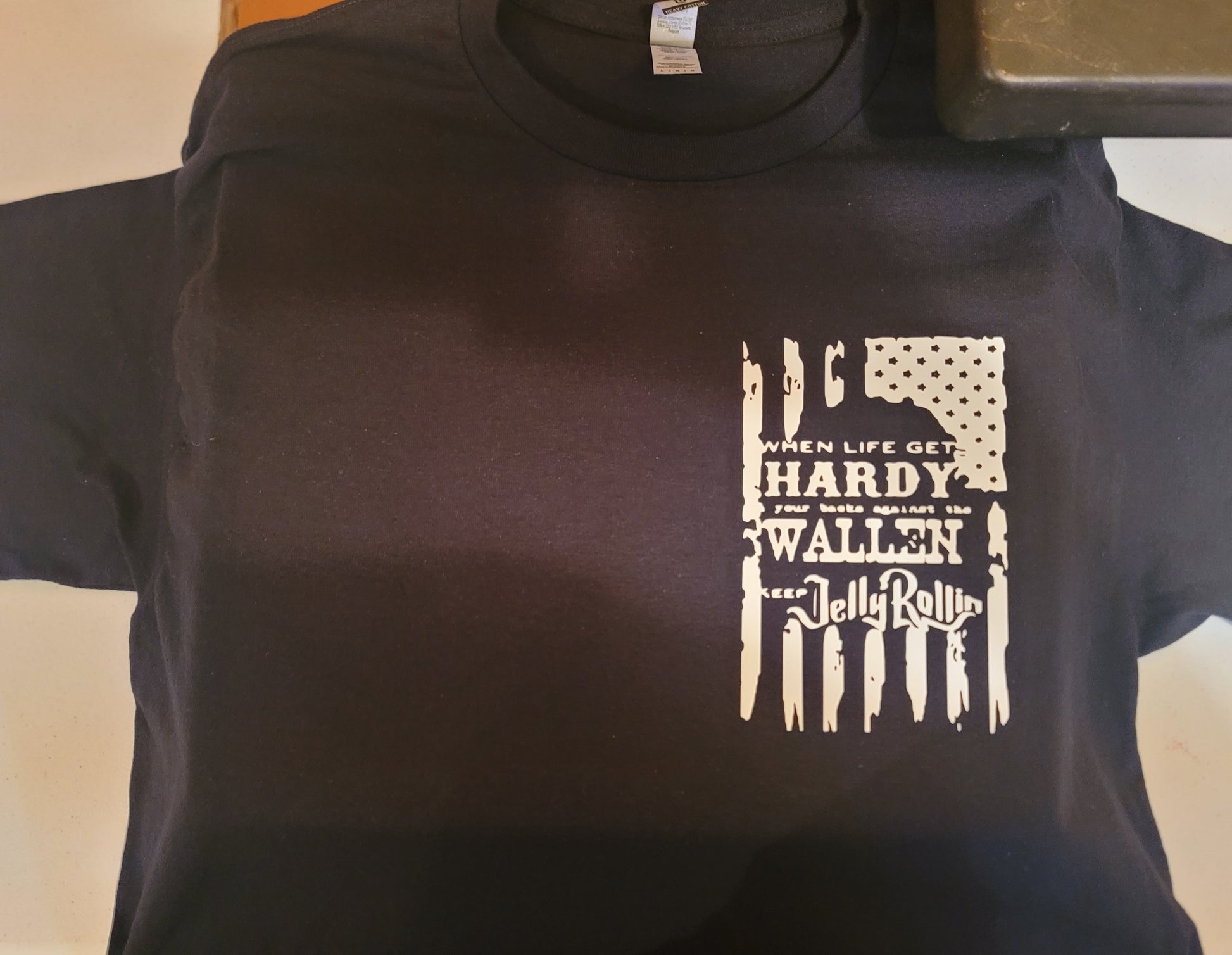 Black Hardy, Wallen, and Jelly roll tee shirt. 100% cotton.